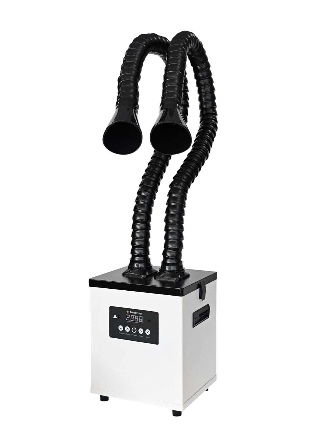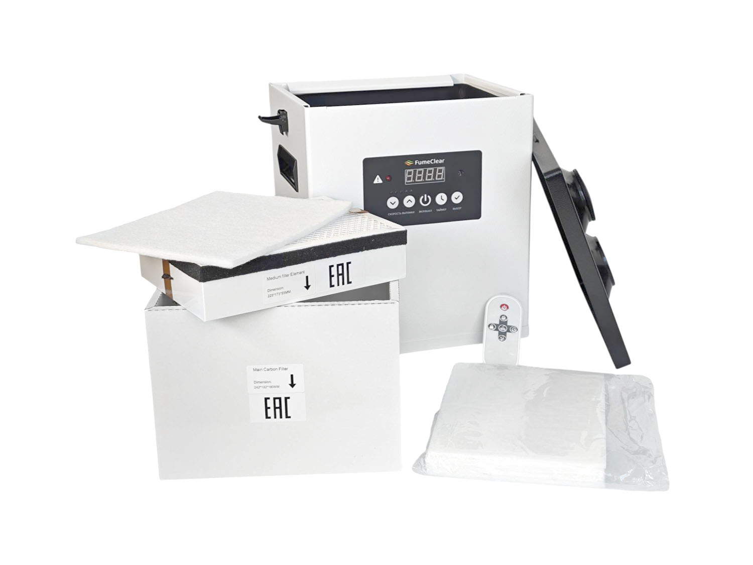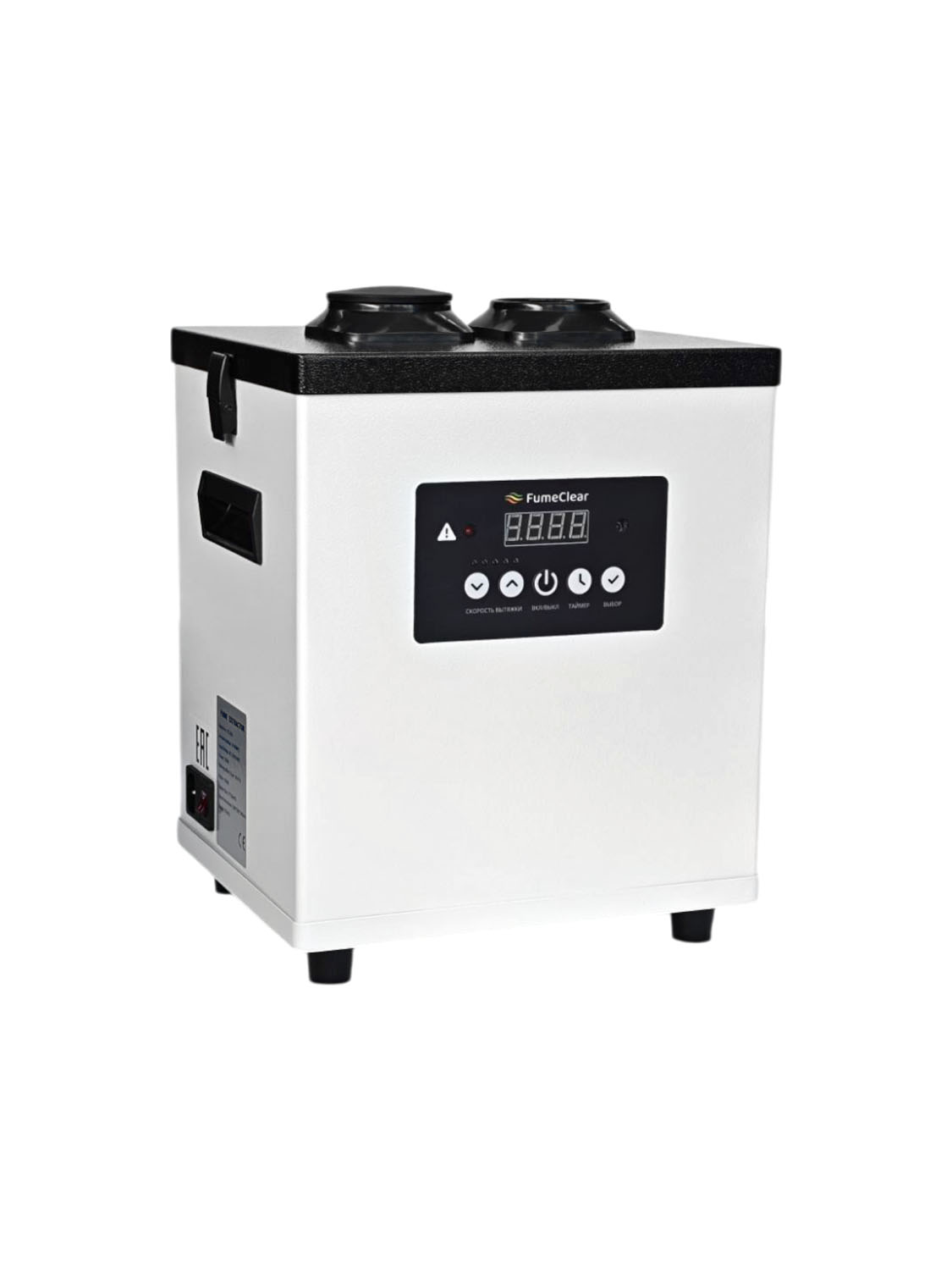 Маленький, но полноценный дымоуловитель со встроенной вытяжкой и трехступенчатой фильтрацией. Подходит для очистки воздуха от паяльного дыма, дыма и пыли от маленького лазерного маркиратора, косметических лазеров.