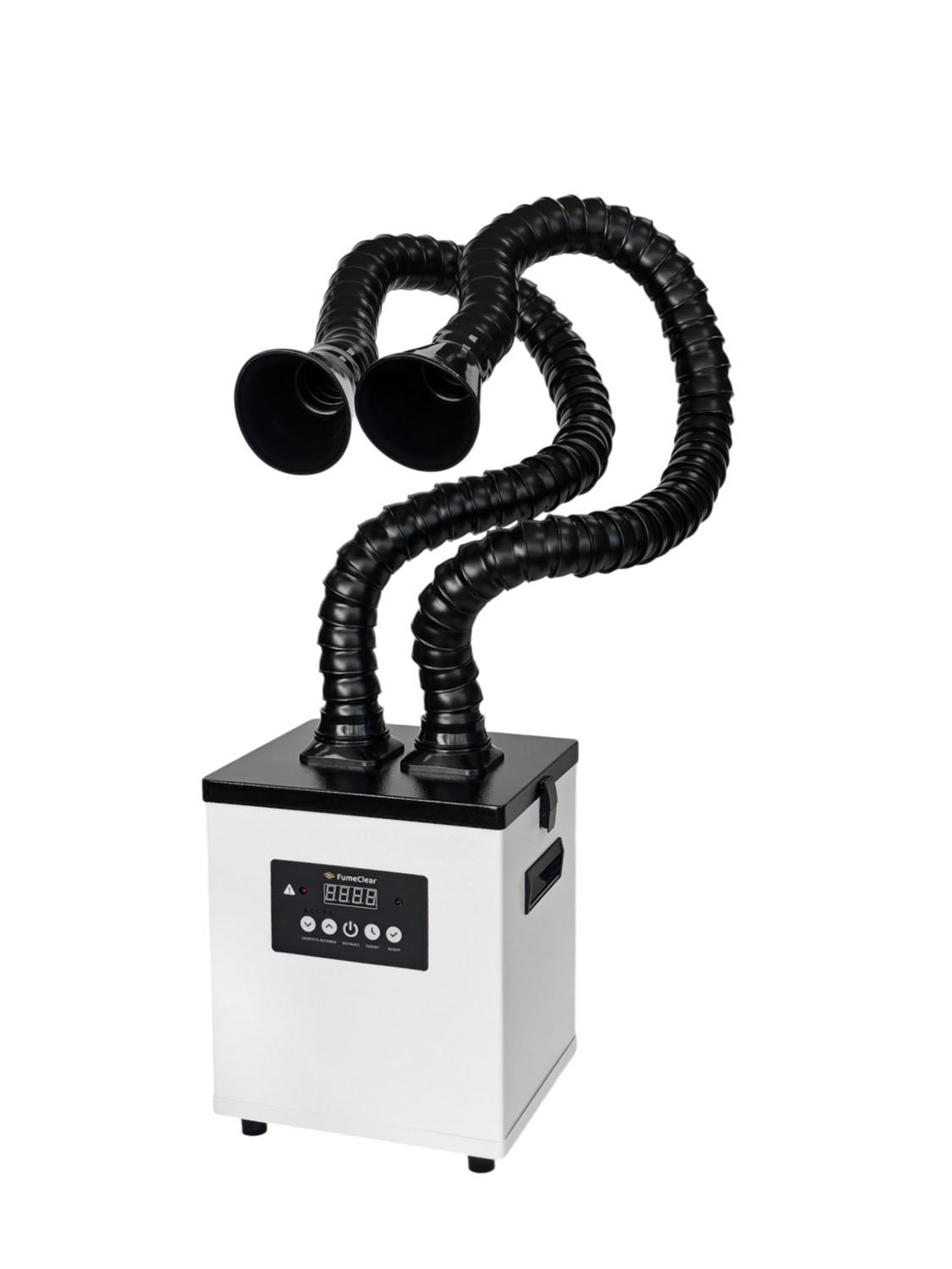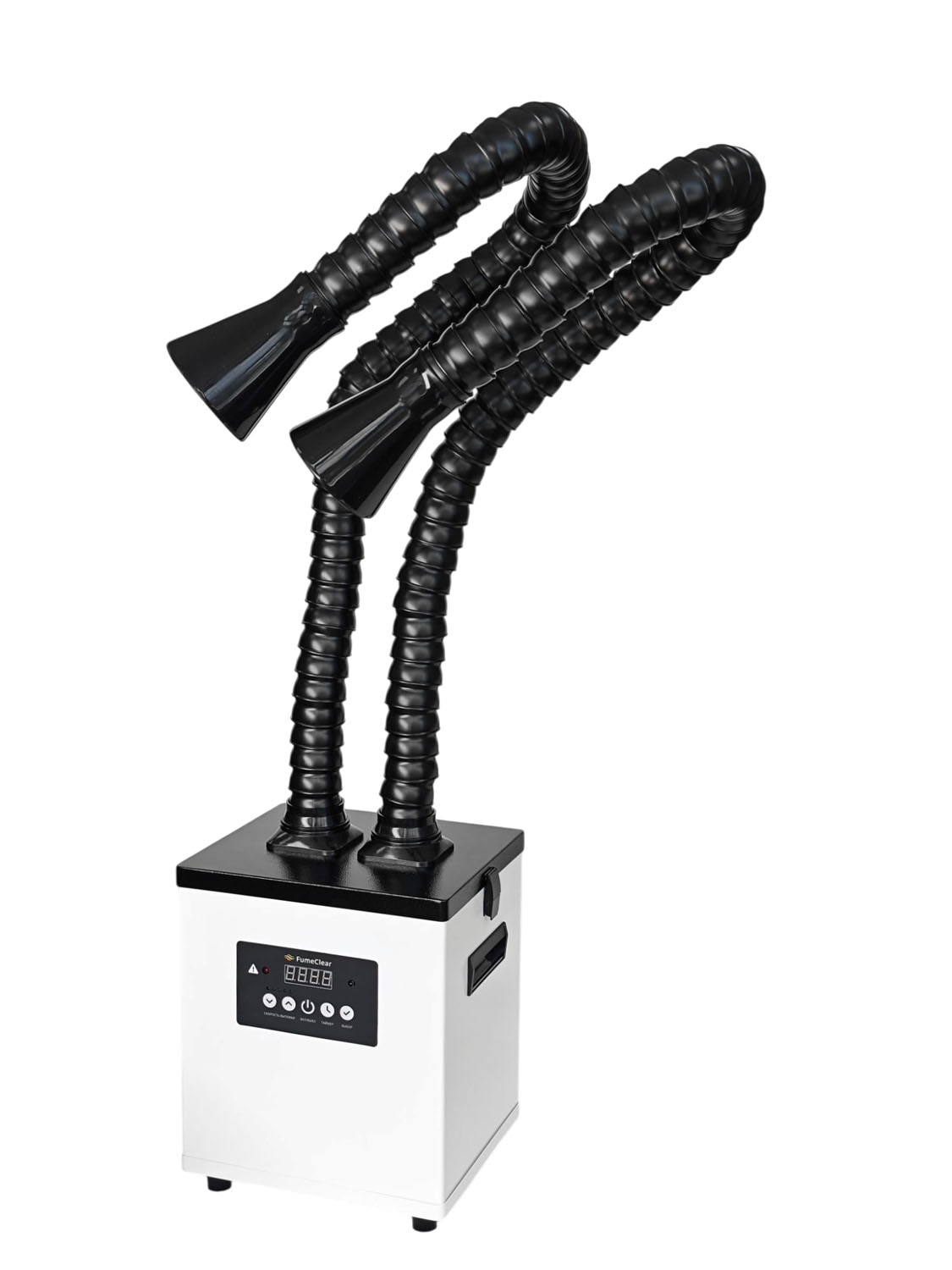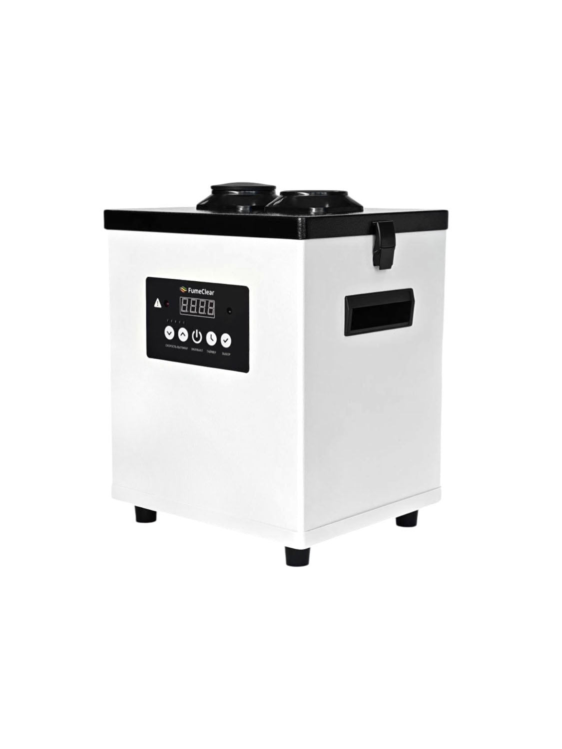 Маленький, но полноценный дымоуловитель со встроенной вытяжкой и трехступенчатой фильтрацией. Подходит для очистки воздуха от паяльного дыма, дыма и пыли от маленького лазерного маркиратора, косметических лазеров.