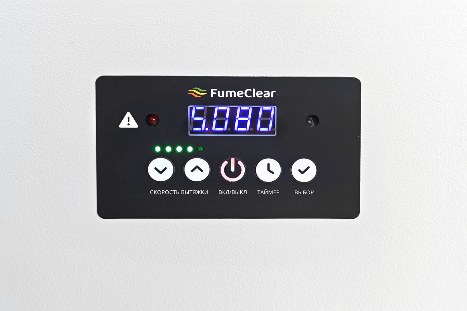 Все три фильтра можно заменить отдельно. Инженеры разработчики расположили панель управления в удобном месте сверху на передней стенке. На панели управления есть цифровой индикатор воздушного потока и кнопки управления скоростью вытяжки, таймером отключения и включением вытяжки.