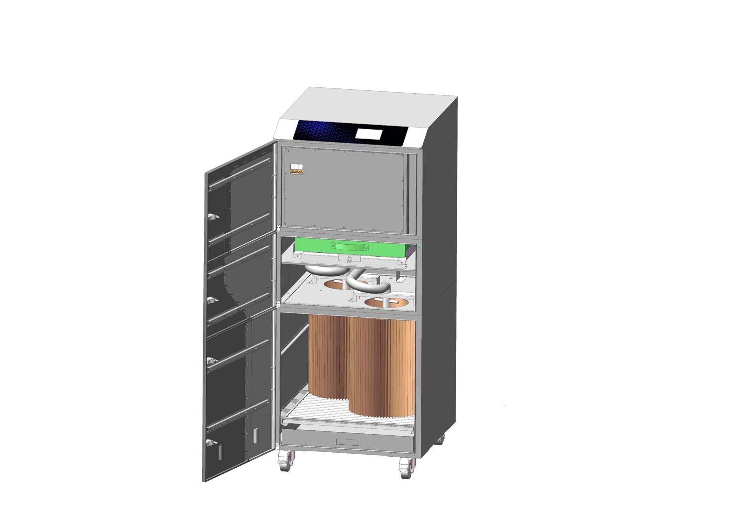 Серия D, начиная с модели 800 работает на основе многоразового цилиндрического HEPA-фильтра класса H13, который автоматически очищается встроенной пневматической системой. Устройство эффективно справляется с мелкодисперсной пылью от промышленного оборудования и ручной обработки материалов.