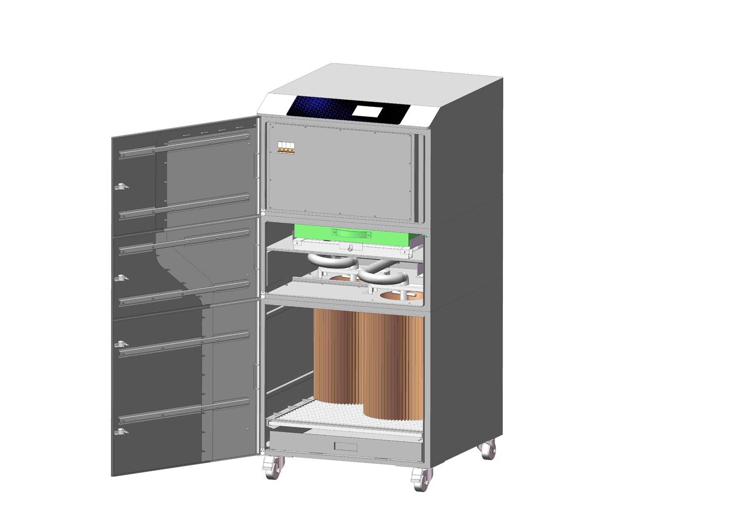 Система обеспечивает комплексную фильтрацию мельчайших загрязнителей, возникающих в процессе лазерной обработки древесины, создавая безопасные условия труда для персонала.