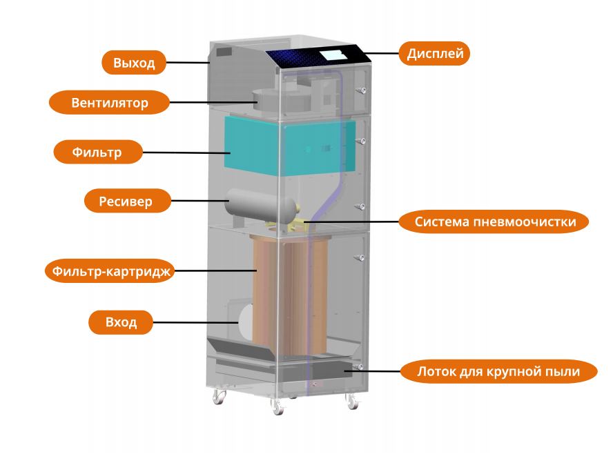 Система обеспечивает комплексную очистку воздуха, гарантируя безопасные условия труда и соответствие производственным стандартам.