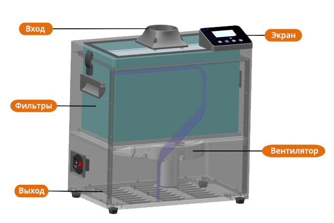 Конструкция включает 4 сменных фильтра: