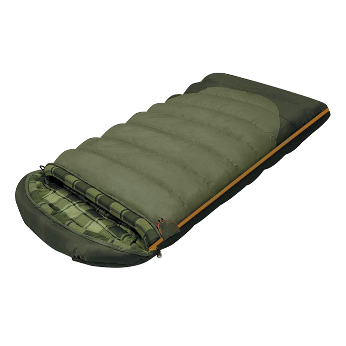 Спальный мешок сохраняет тепло при температуре до -10°С. Обладает хорошими дышащими способностями и выполнен из непромокаемой ткани.