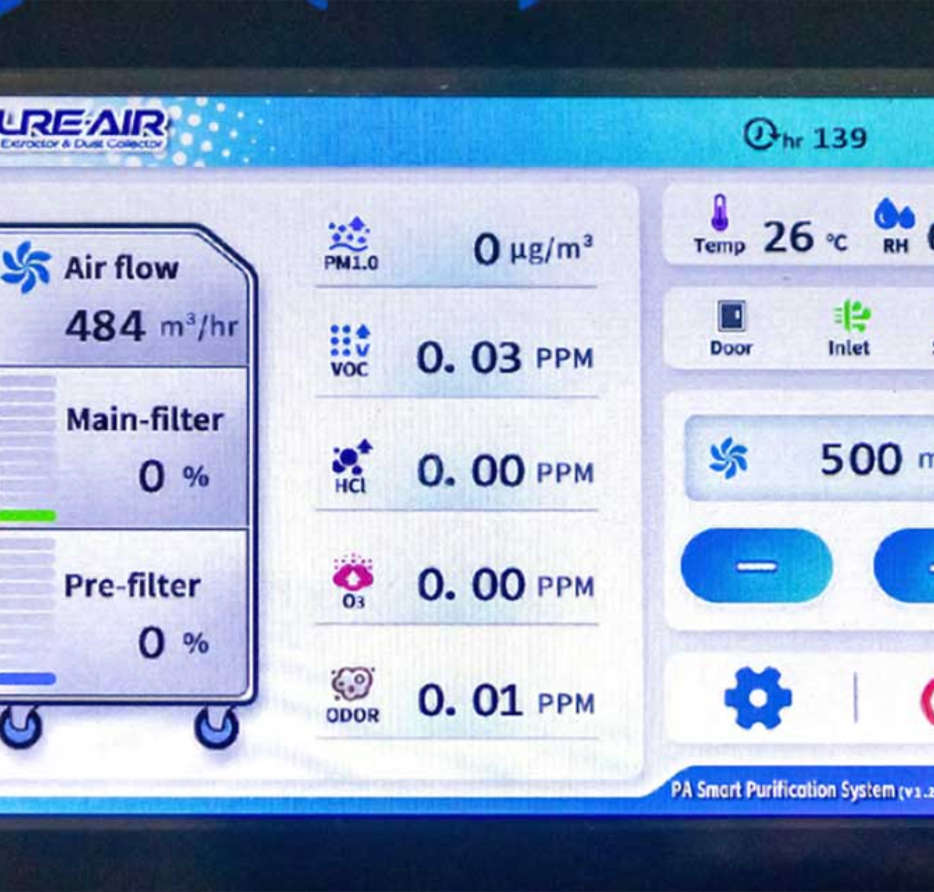 Разработанная специально для ФВУ операционная система управления с цветным сенсорным дисплеем, контролем качества воздуха и интеграцией в любые заводские сети удаленного управления и контроля.